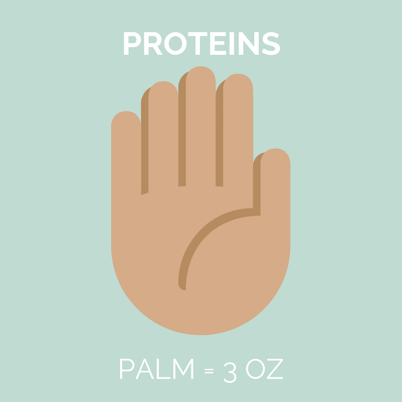 If you are estimating food while away from home, you can use your hand as a tool to help you understand general portion sizes. It isn’t the most accurate way to track, but it can be more trustworthy than just eyeballing portions. You can also practice at home by estimating portion sizes and then double checking your estimations by weighing those portions with your scale.